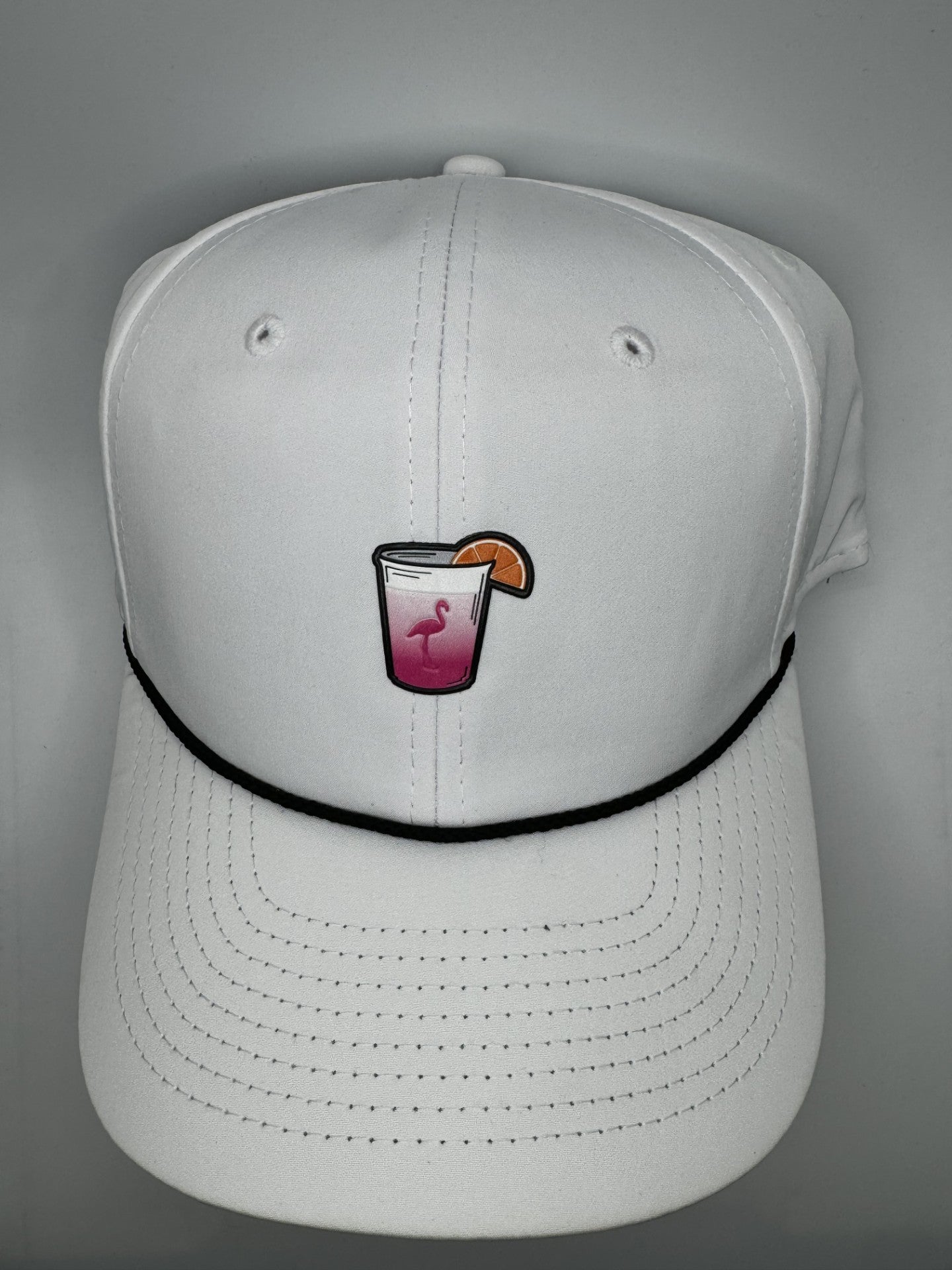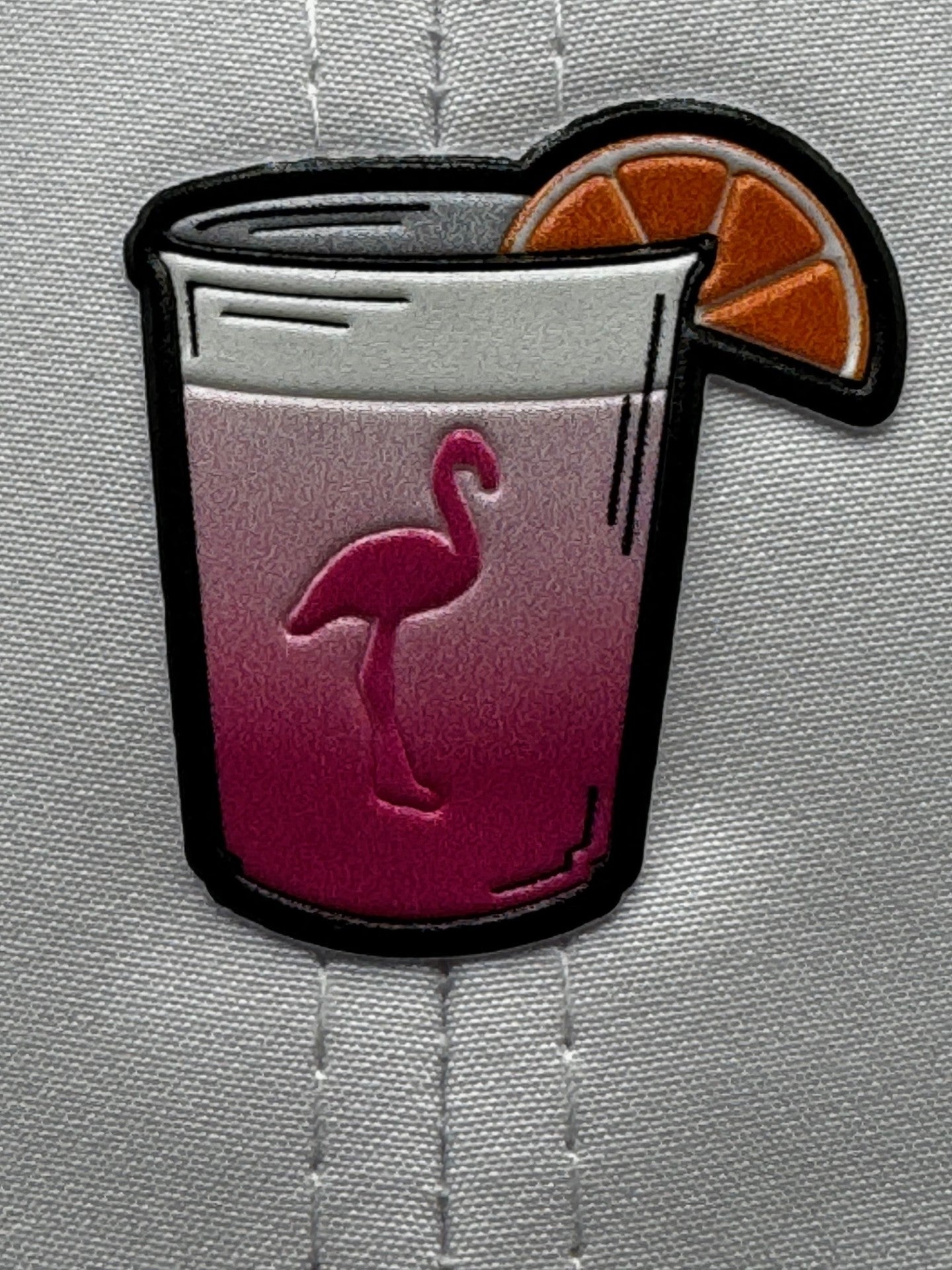 TITO'S, SODA, SPLASH OF GRAPEFRUIT. THIS HAT FEATURES A GO-TO SWING FUEL COCKTAIL. FEATURING IMPERIAL'S 3D INSIGNIA CUSTOMIZATION WITH THE PHISM FLAMINGO ICON ON THE CUP AND PHISM GOLF EMBROIDERED ON THE BACK OF THE HAT.